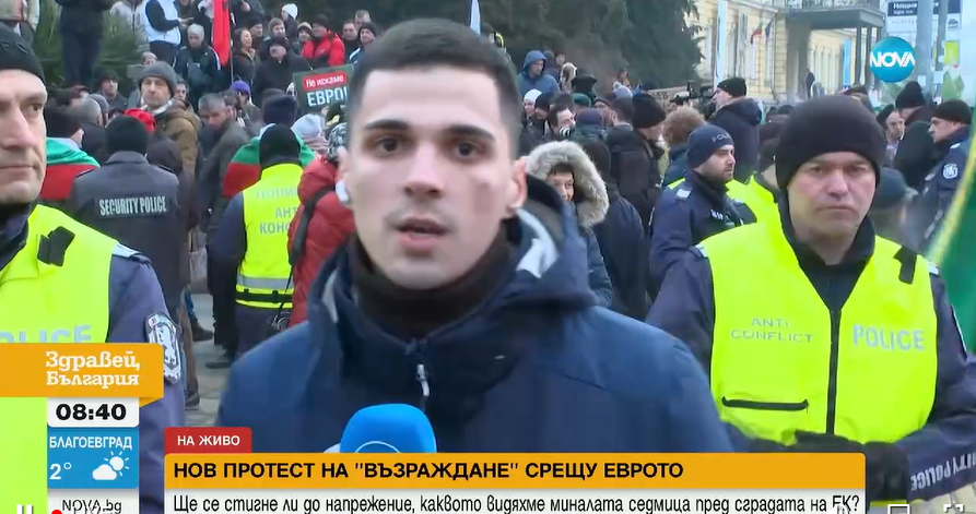 Новият протест на „Възраждане“ срещу въвеждане на еврото и запазване на българския лев започна. Очаква се по-късно той да се пренесе вътре в парламента, след като лидерът на партията каза, че отвън протестът ще е спонтанен граждански и призова недоволните да влязат при депутатите.
