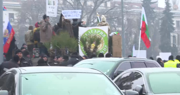 Засега ситуацията е спокойна, като се чуват викове „Оставка“, а движението на автомобили не е спряно.