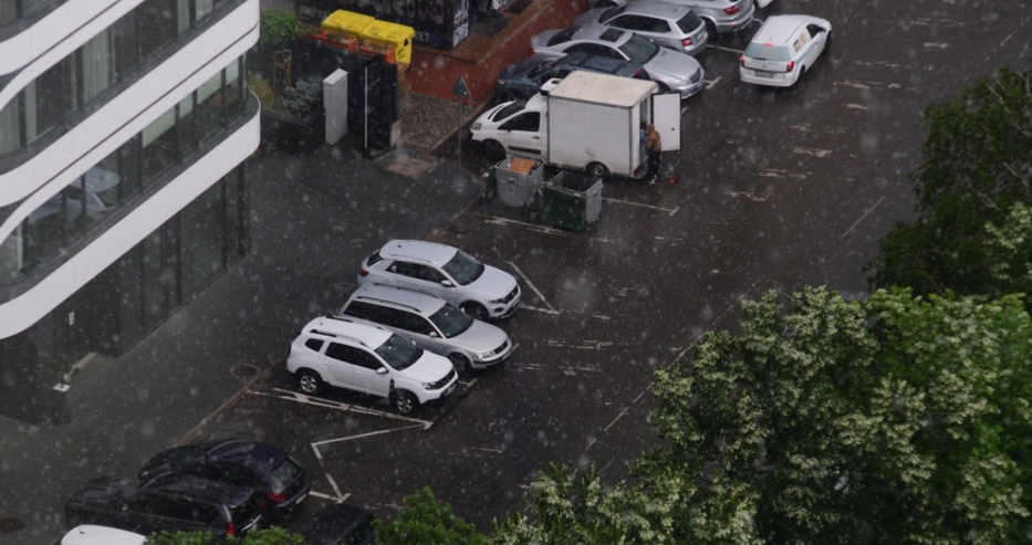 Проливен дъжд се изля в някои части от столицата днес. В най-големия столичен квартал "Люлин", както и в Божурище, е паднала и градушка, сигнализираха читатели на Novini.bg.
