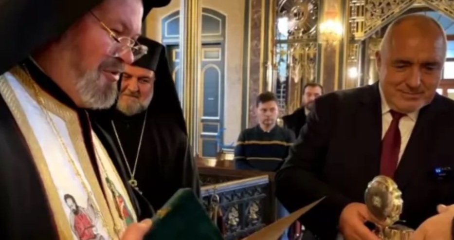 След молебена в храма Високопреподобният архимандрит Харалампий - духовен ръководител на православните българи в Града на Босфора ми подари отломък от един от камъните, с които е бил измъчван и страдалчески убит св. Стефан. Дарът е поднесен на българската църква “Св. Стефан” в Истанбул от Йерусалимската Патриаршия с нарочен Акт. Затова днес тази свещена каменна реликва ми беше предадена в присъствието на Екзарха на Йерусалимския Патриарх Теофил III. Аз от своя страна ще го подаря на новостроящия се православен храм “Св. Стефан” в Южния парк в София", обясни Борисов във Фейсбук.