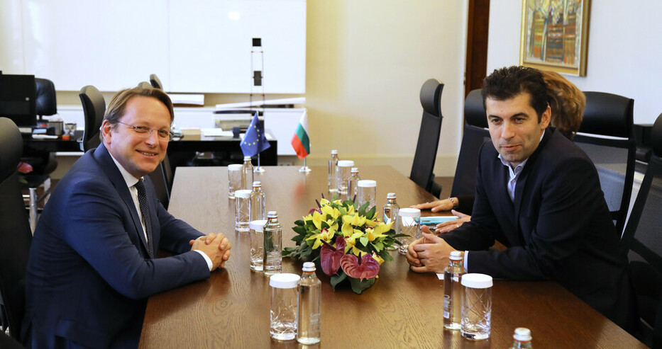Работна среща проведе днес премиерът на България с еврокомисаря по съседство и разширяване Оливер Вархеи.