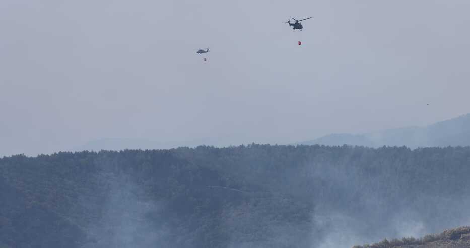 В гасенето вчера участвашe цялата налична летателна техника: двата български хеликоптера и въздушна помощ по линия на Европейския механизъм за гражданска защита, включително и двата шведски самолета, пристигнали вчера. Поради метеорологичните условия днес обаче няма да се разчита на гасене по въздуха.
