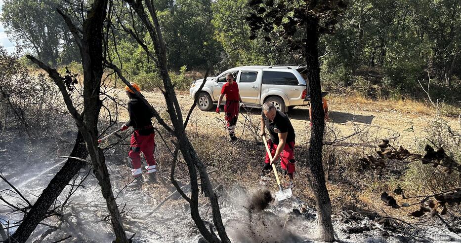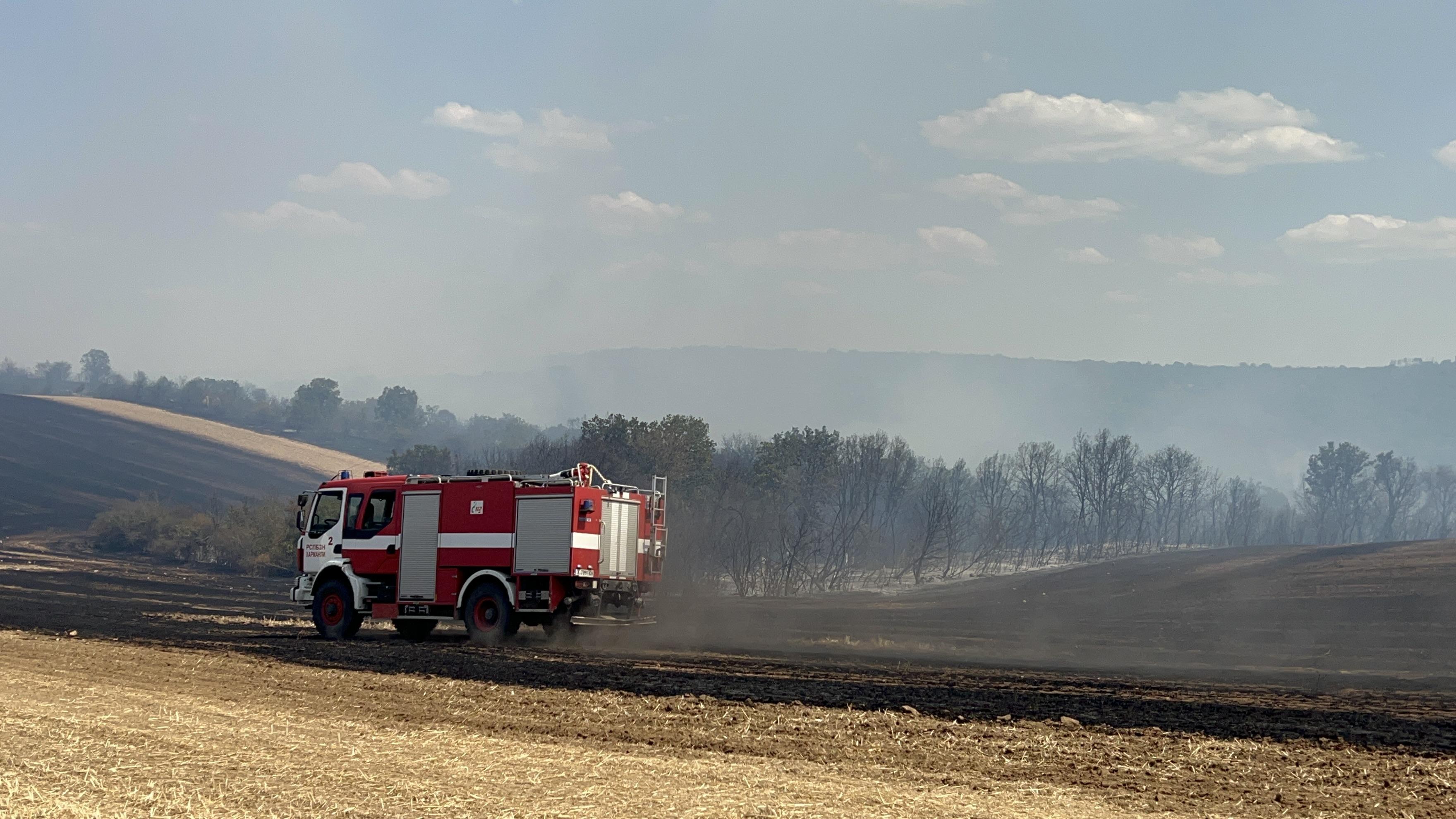 Продължава гасенето на пожара между селата Доситеево и Коларово