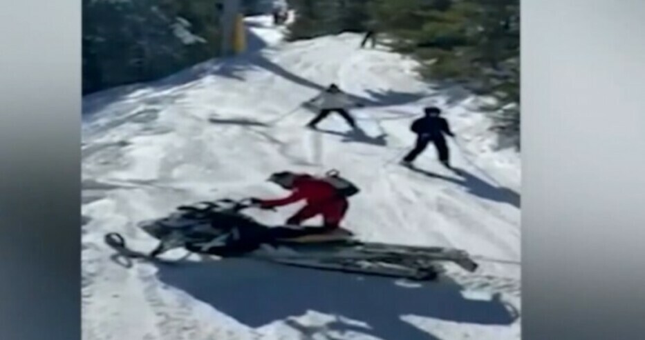 На кадрите, разпространени в социалните мрежи се вижда как мъжът навлиза с висока скорост в пистовата зона над Добринище. В същото време, две жени, които карат ски, не успяват да видят навреме моторната шейна и се удрят в нея.