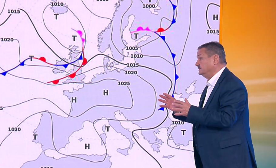 Ванеса, за която говорихме няколко пъти, вече я няма, но се задава един много голям антициклон. Той е по-скоро антициклон и гребен на високо атмосферно налягане над Европа, който нахлува над България. В понеделник в следобедните часове той бъдем засегнати от периферията на този голям студен фронт, и е възможно във вторник и сряда да се появи светкавица и да се образува гръмотевична дейност, добави Рачев.