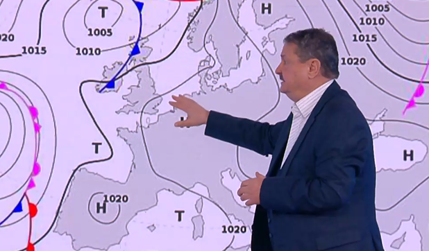 Той говори и за синоптичната обстановка от понеделник в цяла Европа. Тя е обхваната от високо атмосферно налягане, и много на север, и на запад има два доста добре изразени циклона, които общо взето за следващите дни ще определят времето. Което според професора ще е общо взето сравнително скучно, но пък топло време.