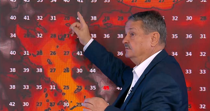 В петък и в събота ни чака едно второ връхче. Освен днешния ден, ни чака един втори връх на температурата. Защото над Западна Европа е сравнително хладно. Ето го студения фронт, хубав студен въздух, в резултат на което над нас, от югозапад се изнася гребен на топлина или топъл въздух. Той ще вдигне отново температурите над 40 градуса, разкри професорът.