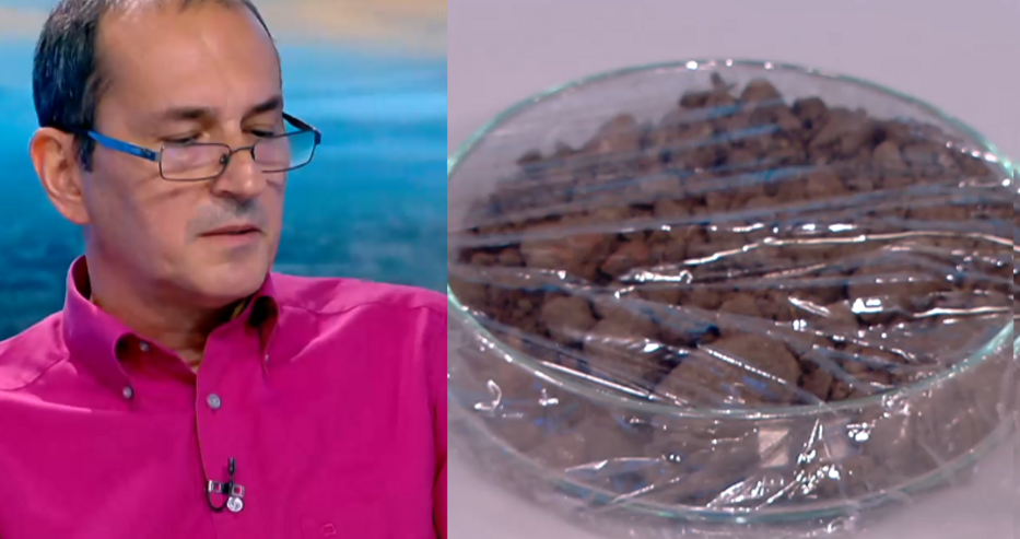 Количеството беше доста голямо, и то не може цялото да се подложи на химичен анализ, тъй като изисква много време и ресурс, който едва ли си заслужава. Първо пробвах с магнити и се оказа, че едната от торбите реагира. Тоест, залепва се към магнит само едната торба пръст. Тогава ми стана ясно, че това е находката, и след това с магнита пробвах вътре да открия какво е нещото, което привлича. Но се оказа, че се изважда само прах, допълни професорът.