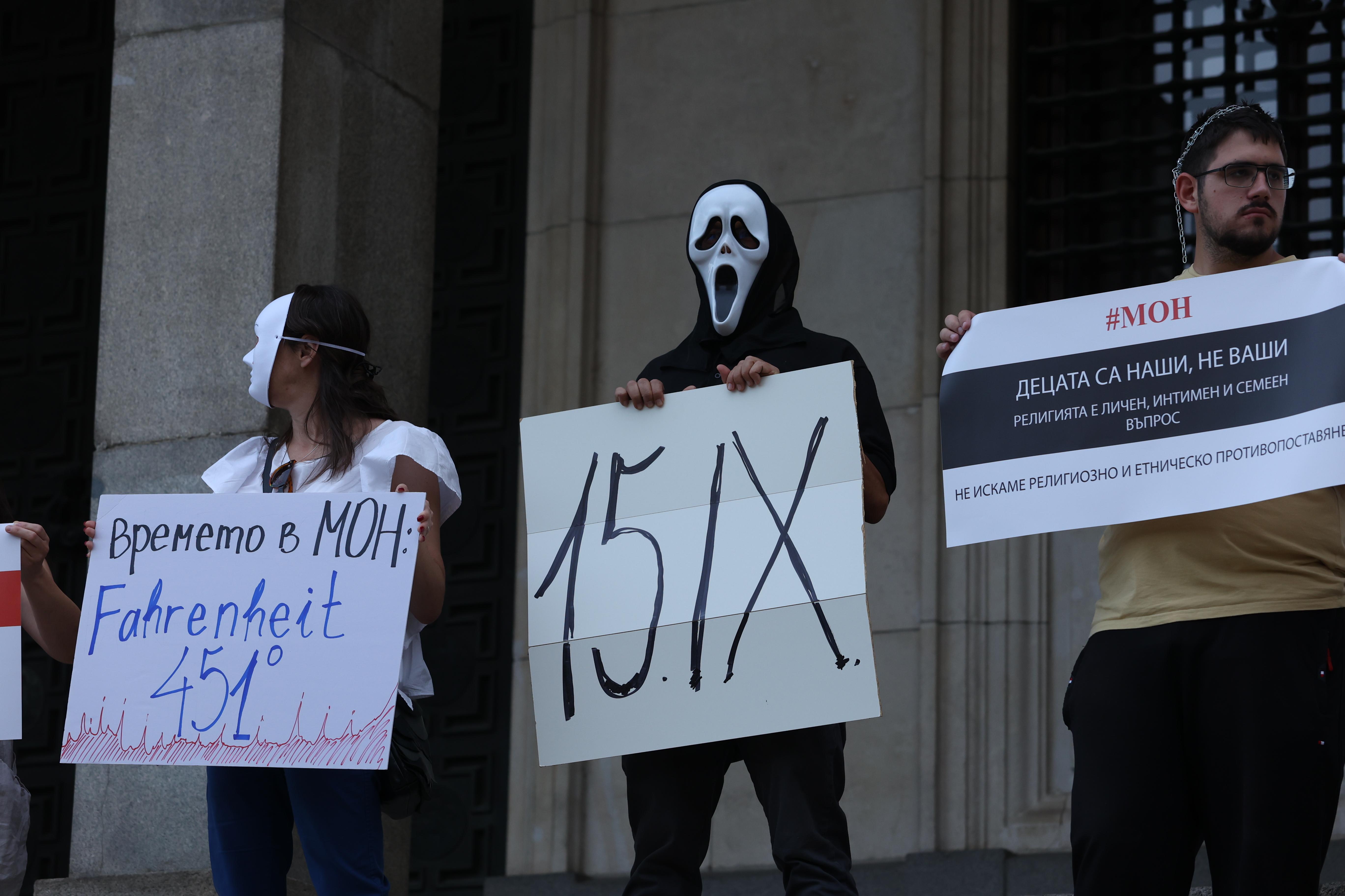 БТА припомня, че в София през май се състояха два протеста под мотото "Училището не е църква". Първият от тях беше организиран на 8 май, на площад "Атанас Буров", срещу който се намира сградата на Министерството на образованието и науката (МОН).