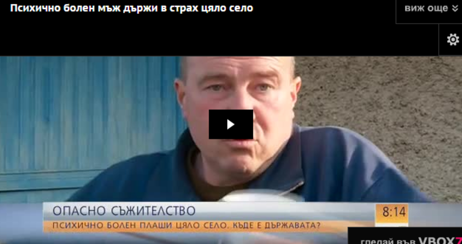 Психично болен мъж държи в страх цяло село. Въпреки че е доказано невменяем, опасен и вече е убил човек, сега той буквално е оставен да се оправя сам в живота, предава Нова тв.Както и да посяга на живота на околните.