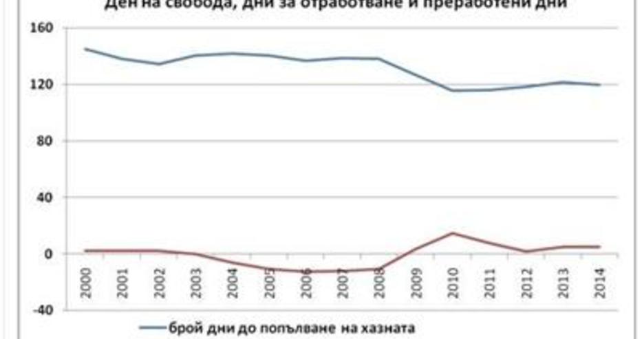 През 2014 г. българите ще изработят средно по 228 млн. лв. за един календарен ден, измерено чрез очаквания БВП (заложен в Бюджет 2014). Следователно през текущата година са необходими 120 дни, за да се изработят предвидените над 27 млрд. лв. национални приходи в бюджета. Дните за отработване се появяват заради заложения дефицит от 1,1 млрд. лв. Използването на официалните прогнози на правителството е най-коректният начин да се направи тази сметка, но това не означава, че реалността ще бъде точно такава. Например, при пресмятането на датата за 2010 г. също бяха използвани официалните прогнози, но те се разминаха сериозно с реалностите - сривът на приходите и появата на дефицит премести деня доста по-рано от първоначално очакваното.