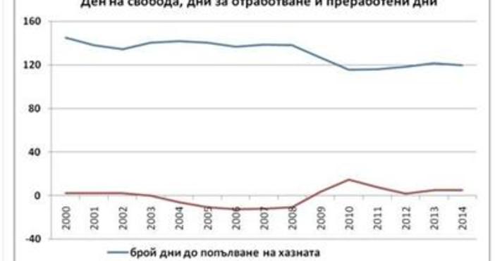 Най-много дни през 2014 г. ще отделим, за да попълним приходите от ДДС - 36 дни. За приходите от акцизи ще са ни нужни 19 дни. За осигуровките ще ни трябват 27 дни - 19 дни за социално осигуряване и 8 дни за здравно. Приходите от подоходните данъци ще попълним за 12 дни, а тези от корпоративни данъци - за 7 дни. Други 7 дни ще работим, само за да си платим държавните и общински такси. Имуществени данъци ще ни костват 3 дена, посочват още от ИПИ.