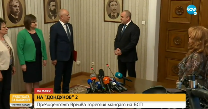 Г-н Свиленски, в изпълнение на Конституцията на България, връчвам третия мандат за съставяне на правителство на БСП. Партията успя да запази добрия тон в една сложна ситуация и доказахте, че можете да работите заедно с останалите политически партии.