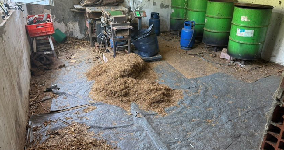 На място полицаите намерили и иззели над 40 кг готова за употреба продукция и около 200 кг подготвен за обработка тютюн, предназначени за пласиране на територията на страната.