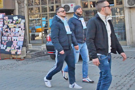 Малко фенове на Лацио се забелязваха днес в ранния следобед по централните улици на София. Първоначално се очакваше поне 300 души агитка да подкрепят довечера "римските орли". Нямаше и традиционната за футболните почитатели бира, а италианците предпочетоха да похапнат в заведенията по булевард „Витоша”.