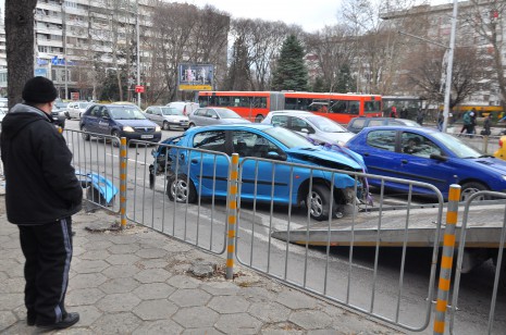 Автомобилът, който катастрофира край Червения площад днес, се е блъснал в бус на инкасо, свидетелства читател на "Петел", който твърди, че е бил на отсрещния тротоар. По думите му, след удара лекият автомобил се е завъртял, ударил се е в оградата откъм дюнерите и заради това е толкова смачкан.