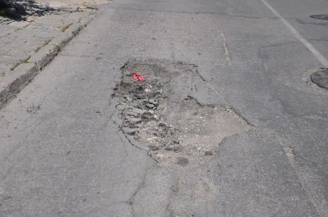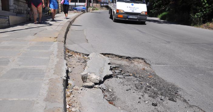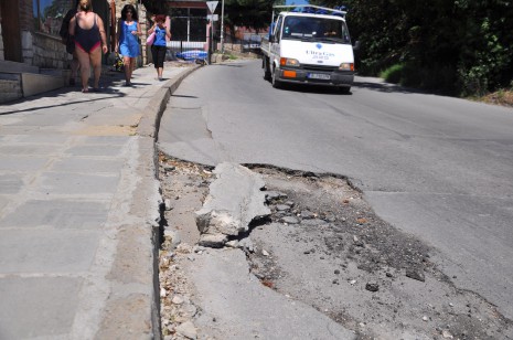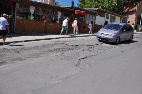 След пороите преди 10 дни асфалтът е набъбнал до тротоара, а на други места е пропаднал и е разцепен на парчета. Пред единия от павилионите е зейнала огромна дупка – метър на метър, която е запълнена лично от собственика. Малко по-нагоре стопанин на бистро не е отварял от 10 дни, тъй като гледката на асфалта отпред е потресаваща. Съдържателят на съседния ресторант пък е спретнал бърза замазка с лични средства.