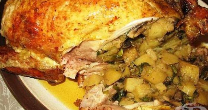 Рецепта на деня: Пълнено пиле с картофи и гъби