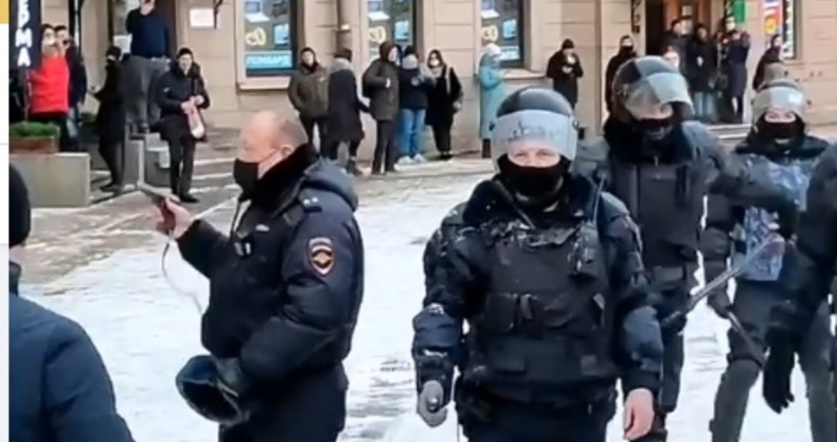 Руски полицай извади пистолет при сблъсък с протестиращи срещу ареста на Навални по улиците на Санкт Петербург, съобщи РТ.
