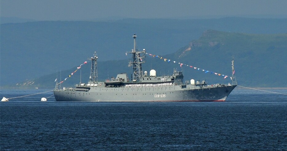 Предполага се, че става въпрос за разузнавателния кораб "Карелия". От Тихоокеанския флот поясняват, че плавателният съд не излъчва сигнал за автоматична идентификационна система, но работи в рамките на международното право и не представлява опасност за корабоплаването.