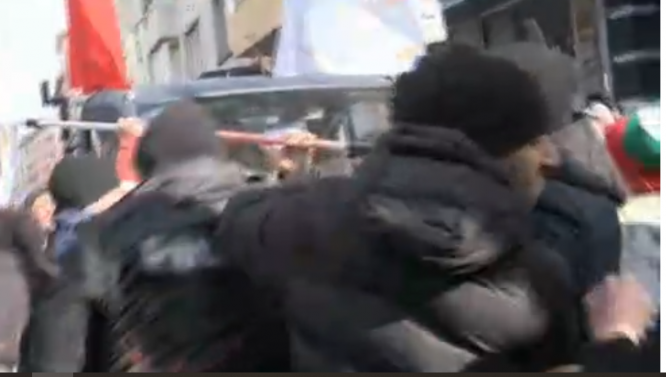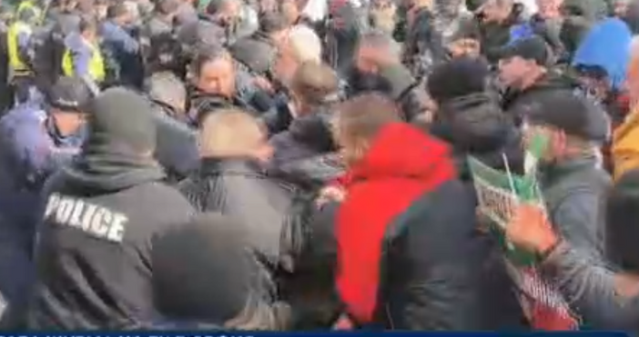 До сблъсъците се стигна, след като организирания от партия "Възраждане" протест срещу приемането на еврото в България прерасна в щурм на сградата на Европейската комисия, предава БНТ. Към нея полетяха червена боя, димки и бомбички. 10 полицаи са ранени, пострадали има и сред протестиращите.