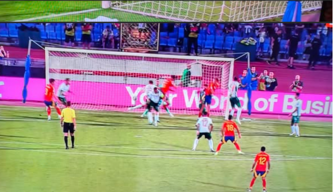 България и Испания играят при 0:3 в световна квалификация пред пълните трибуни на стадион "Васил Левски". В петата минута гостите поведоха с попадение на Микел Оярсабал. 30-ата минута световният клубен шампион с Челси Марк Кукурея намери далечния ъгъл със силен удар и увеличи аванс на иберийците. В 38-ата минута Микел Мерино се разписа отблизо с глава за 3:0.