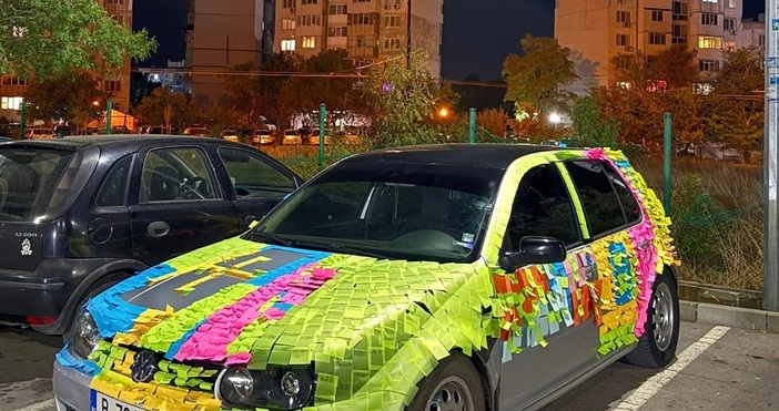 Шедьовър: Налепиха "Голф" с хиляди цветни бележки във Варна
