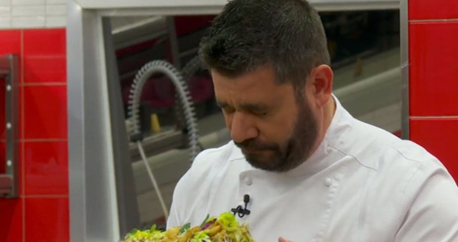 Но още при първата чиния на сините, които предложиха микс от салати, шеф Ангелов се изкриви и викна: ГСП! Знаете ли какво значи!?