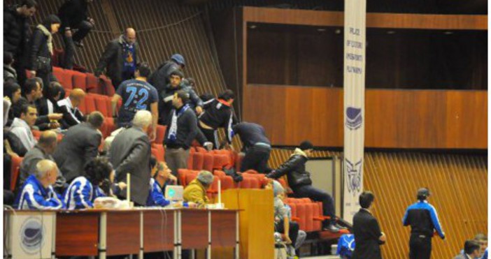 Милостив съд! Само 200 лева глоба за хулиган, ударил в челюстта полицай на баскетболния мач във Варна