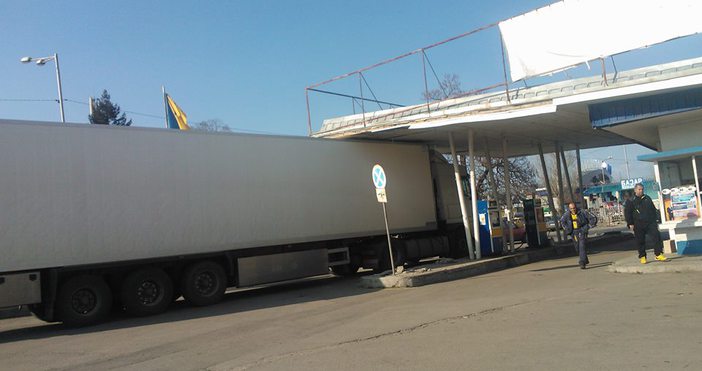 Само в "Петел": Вижте как ТИР се пъхна като в иглено ухо под козирка на "Илиянци" (Снимки)