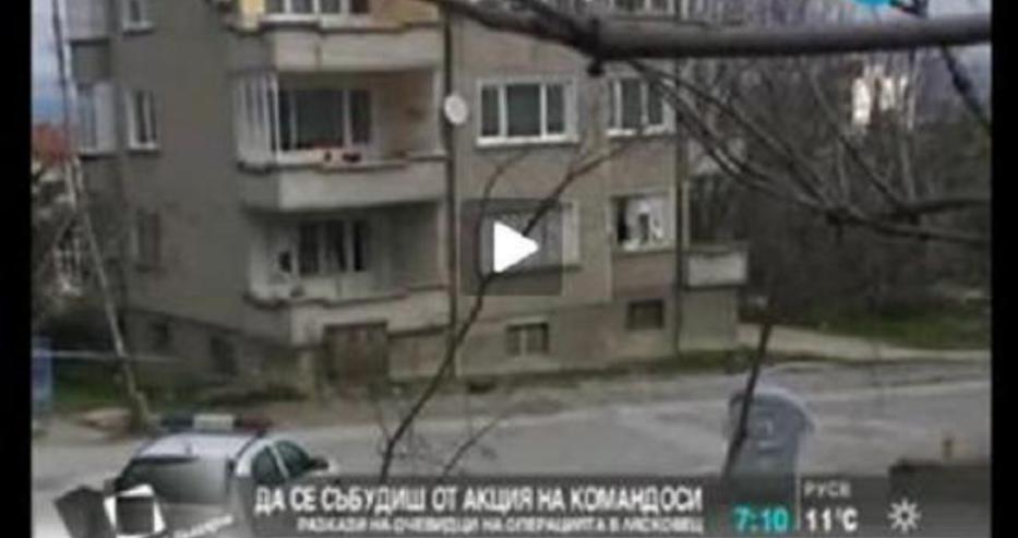 От изстрели и викове се събуждат в петък сутринта съседите на Петко Петков в иначе спокойното градче Лясковец. Около сградата буквално избухва истинска война.