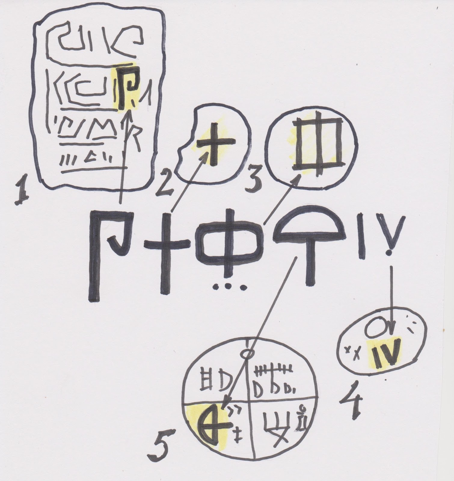 Четвъртият знак отговаря на Линеар А и Линеар Б знак със стойност ТУ.