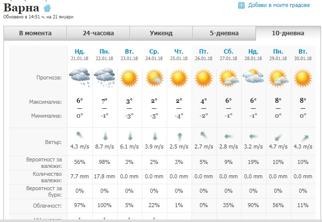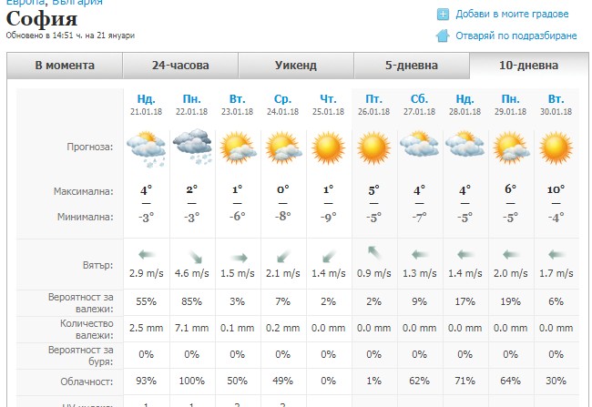 Седмична прогноза за времето по дни от 22 до 28 януари