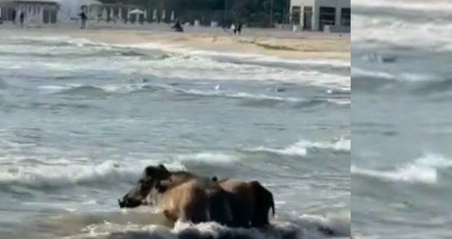 Необичайни курортисти на плажа в Аспарухово. Семейството диви прасета отиде на плаж тази сутрин към 8.30 на доста оживената ивица под варненския квартал Аспарухово.