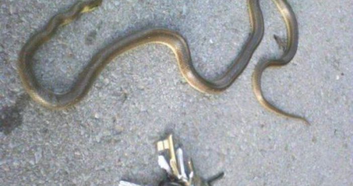Изплашен, главата на семейството подскочил и натиснал рязко спирачката. Колата поднесла на асфалта, излязла извън него и се паркирала в крайпътната нива. Майката и детето изхвърчали незабавно навън, а бащата с гаечен ключ в ръка предпазливо започнал да търси влечугото, което се било скрило под седалката му, пише Блиц.