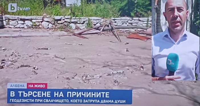 "На мястото на свлачището от 17 ч. вчера следобед тук започва сериозен теч на вода от ската. Дали тази вода е предизвикала свлачището или течът е вследствие на рухването на земните маси, това трябва да установи проверката. Тук в момента са експерти от Геозащита, представители на община Балчик, областната управа на Добрич. Целта на проверката е както да установят причините за свлачището, така и да бъдат набелязани мерки за решаване на проблема. От няколко месеца има идеен проект за укрепване на района. За целта обаче трябва финансиране", заяви репортерът на БТВ Йордан Фотев при пряко включване от мястото.