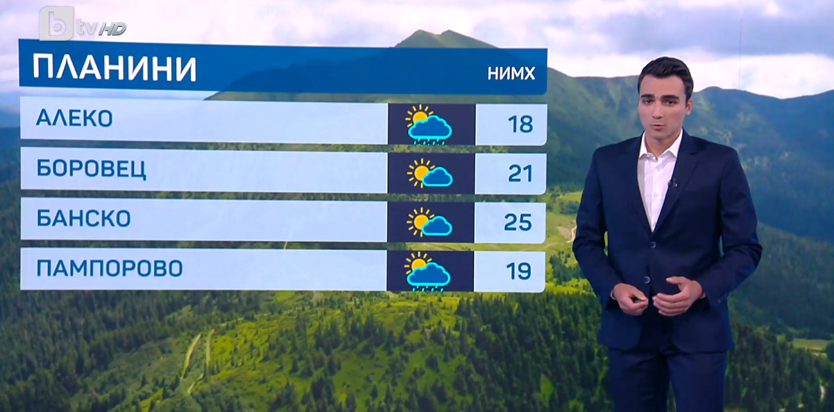 От четвъртък до неделя ще има превалявания, главно в планините и Югозападна България. Следобед ще е доста горещо, с температури до 35, 36 градуса, обяви по бТВ синоптикът Петроний Евтов.
