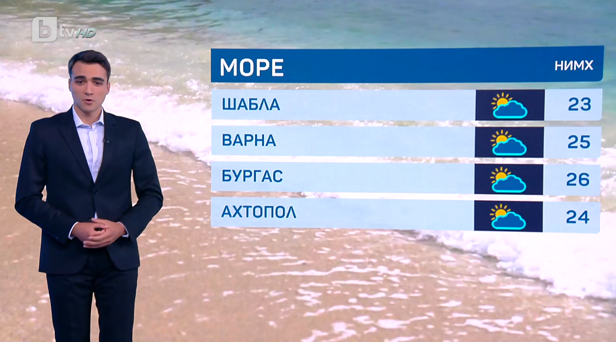 По Черноморието времето ще се задържи предимно слънчево и с временни увеличение на облачността, но валежи не се очакват. Максималната температура там ще е между 23 и 26 градуса и ще е близо до тази на морската вода.