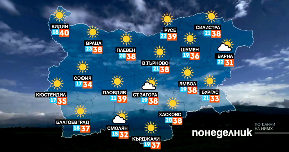 В най-горещите часове следобед термометрите ще се колебаят между 34 и 39 - 40 градуса.