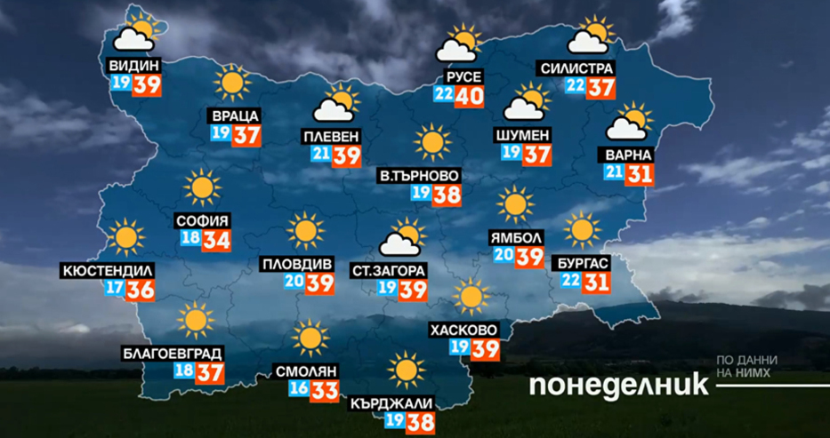 Той подчерта, че в следващите 10 - 12 дни, конкретно утрешния понеделник ще е особено горещ - с температури между 35 и 40 градуса, в обичайно най-топлите точки на страната.