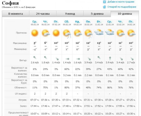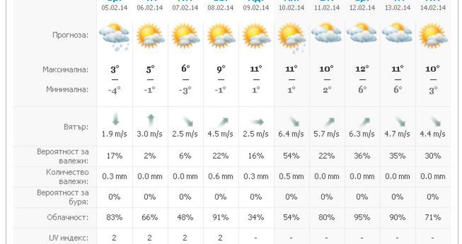 Ниската облачност над западната и централната част от Дунавската равнина ще се задържи малко по-дълго и затова там температурите ще остават доста по-ниски. Над останалата част от страната обаче облачността ще е разкъсана, ярко пролетно слънце ще грейне над югозападните райони и е много вероятно да подлуди дръвчетата, готови да цъфнат. Вятърът постепенно ще се ориентира от югоизток и юг и ще отслабне, допълва Пик.