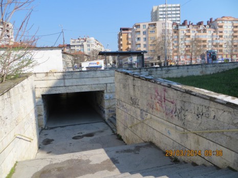 2. Подлезът до ул. "Царевец": нормално проходим, сравнително тъмен през светлата част от деня, но слабо използван. Причината: няма голям трафик от хора точно в този участък на булеварда.