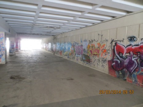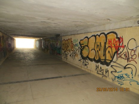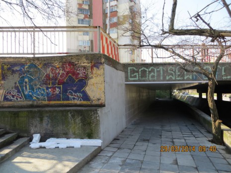 10. Подлезът до Паметника на българо-съветската дружба: нормално проходим, осветен и рядко използван. Както и в останалите 8 от 9 подлеза, и тук майсторите на графити са показали заложбите си.