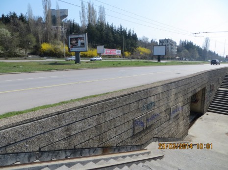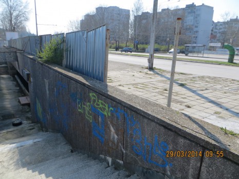 9. Подлезът до бл. 60 в кв. "Чайка": нормално проходим, осветен, но неизползван. Тук пътникопоток няма. Огради на булеварда също.