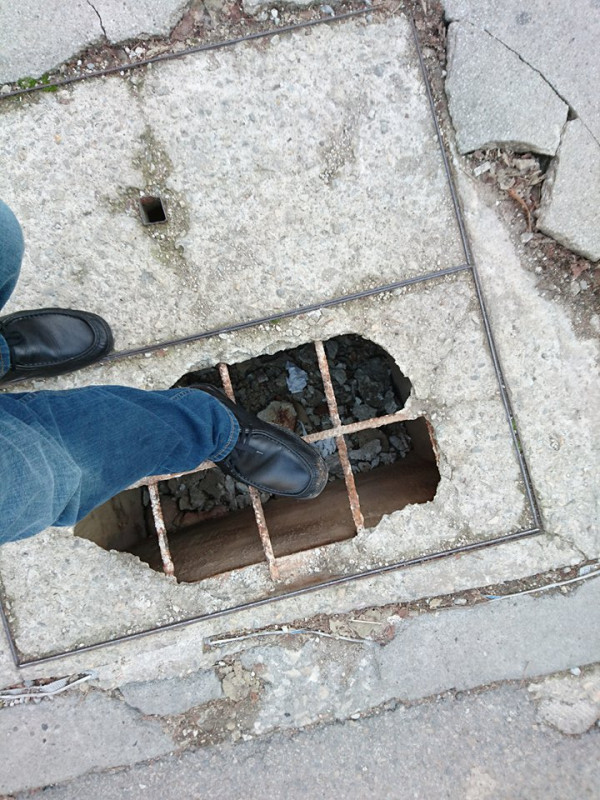 Оказва се, че опасната дупка на тротоара, трябвало да бъде запълнена след като първо се подмени капак, който е бил строшен.