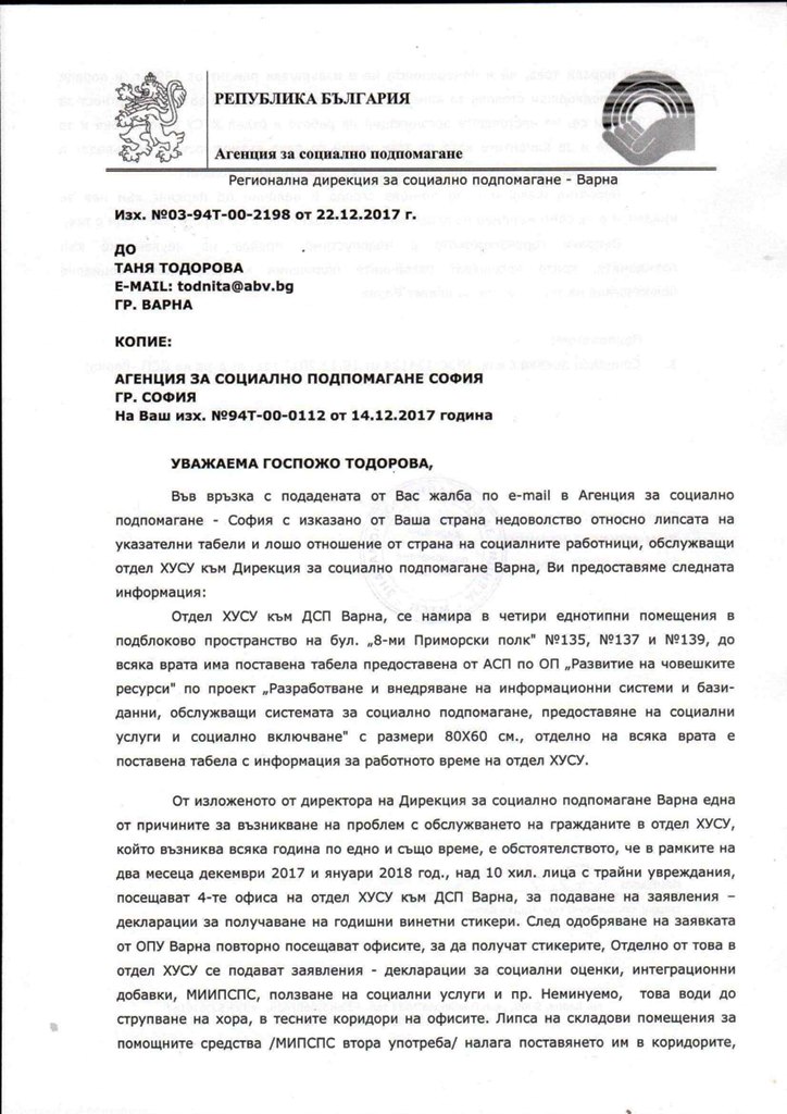 Г-жа Таня Димитрова ни изпрати копия на отговорите, които публикуваме:
