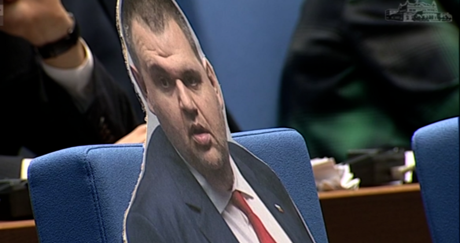 Сложиха картонен Пеевски на мястото му в парламента
