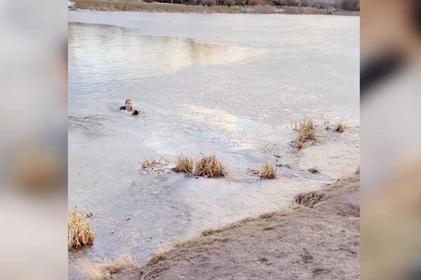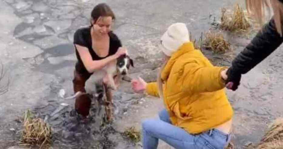 Смела млада жена скочи в ледена вода, за да спаси давещото се кученце