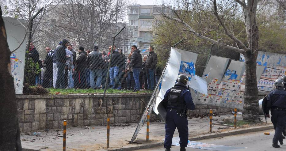 В суматохата се получи и лека схватка между униформените и феновете на "червените". Ексцесиите бяха потушени, но по непотвърдена информация за привърженик с разбита от хвърлен камък глава.