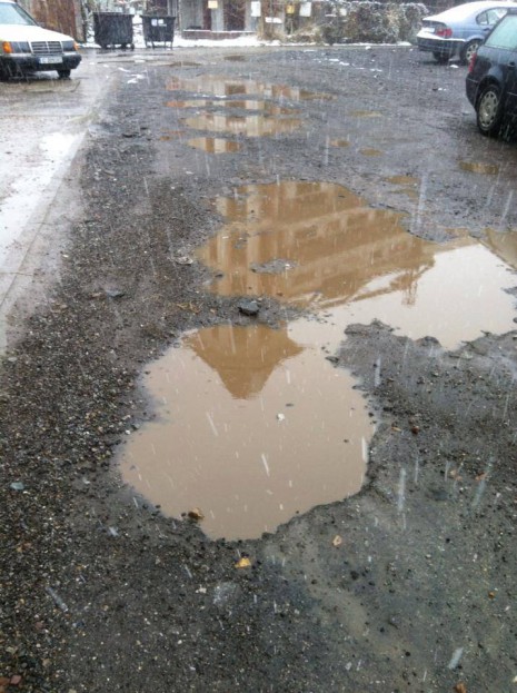 Как ли обаче ще се почувстват някои от заможните обитатели на квартала, карайки скъпите си автомобили в киша, кал и дупки, които наподобяват малки езерца.
